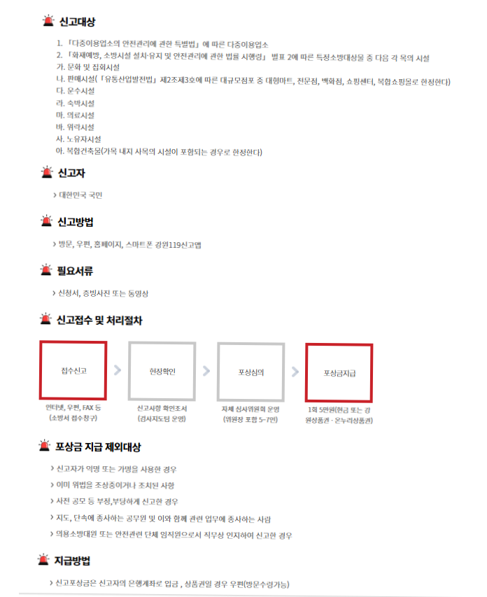 비상구 등 소방시설 불법행위 신고 5만원 포상금 받기
